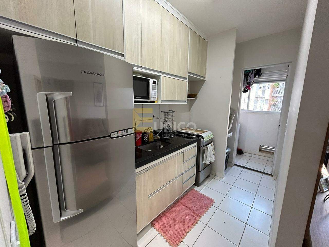 Apartamento a venda em Valinhos - Condomínio Alta Vista com 45m, com 2 quartos com armários planejados, sala 2 ambientes com ventilador, ampla sacada com vista livre, banheiro com gabinete e blindex, cozinha planejada, área de serviço e 1 vaga de garagem descoberta.