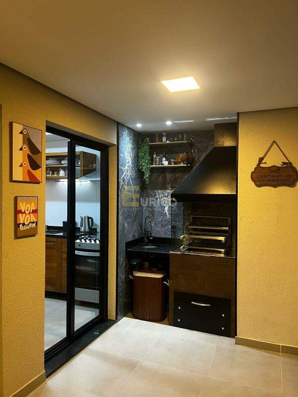 São 3 suítes, sendo 1 com closet. Com uma sala ampla, contém também uma área gourmet com churrasqueira a carvão. O imóvel oferece uma cozinha funcional e completa contendo uma despensa. São 3 vagas na garagem e 1 Box privativo coberto. O apartamento também conta com uma área de serviço e área técnica.