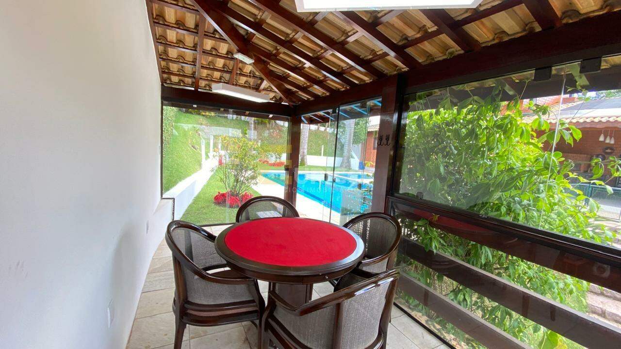 A área de lazer no platô acima da casa com acesso por escadas é um convite para aproveitar os momentos de lazer e permanecer por longas horas, seja na piscina aquecida, churrasqueira, sala de jogos.