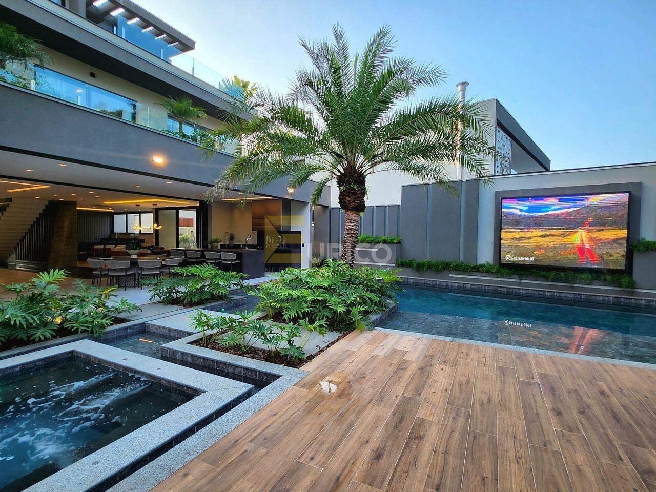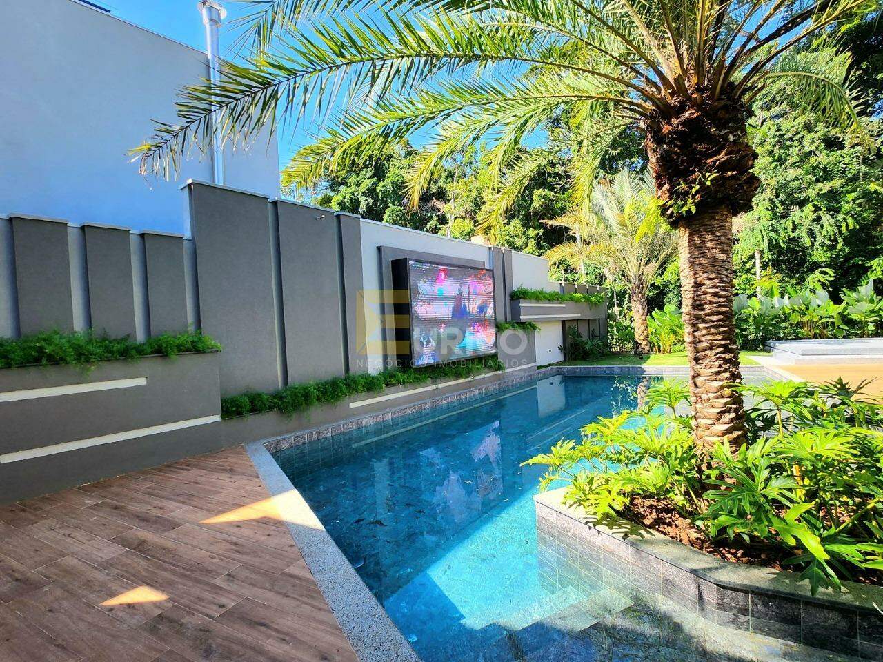 Área externa da piscina possui um telão de 2m x 3m;