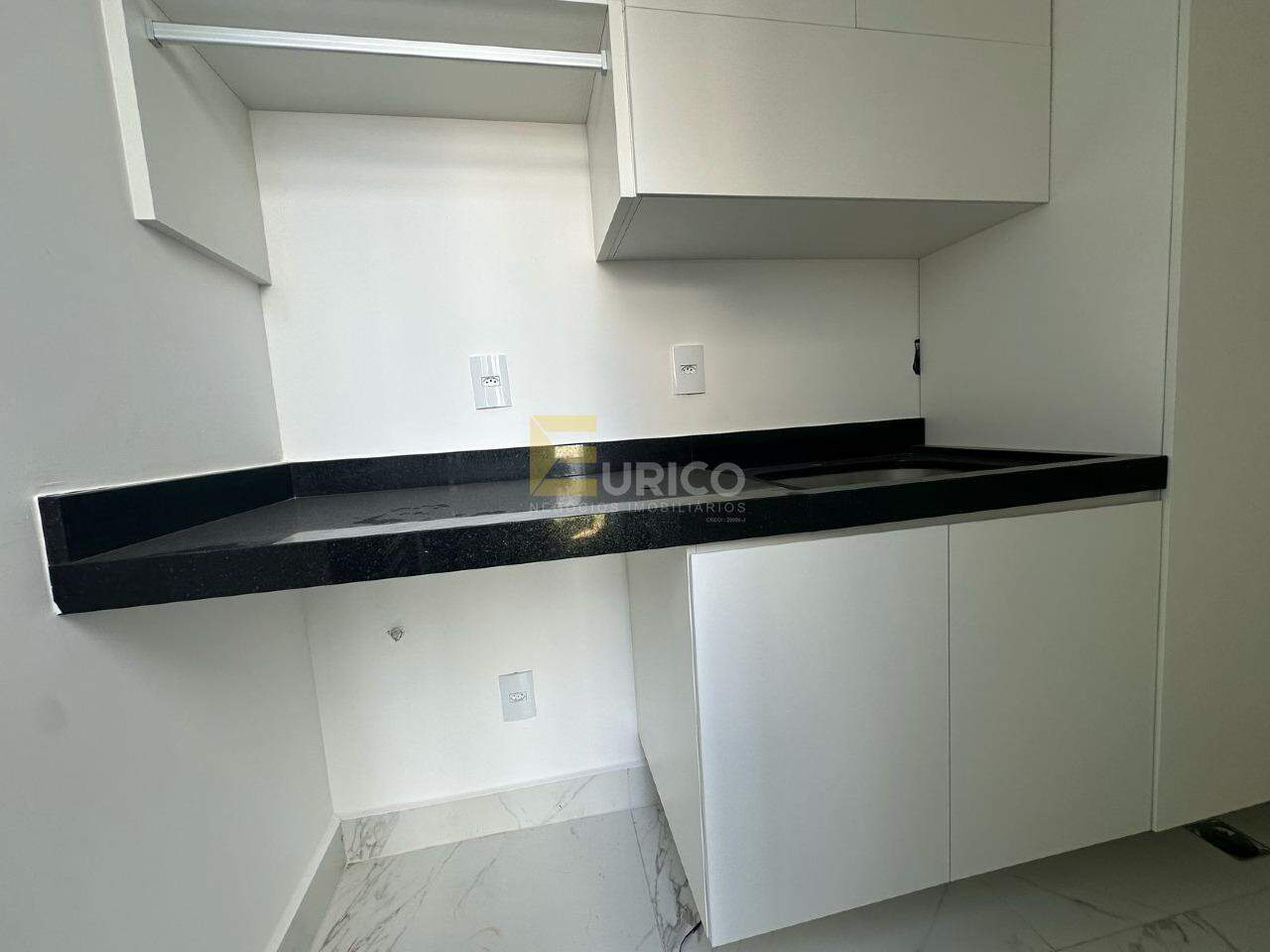 Cozinha com bancada em granito preto em “L”, despensa generosa e espaço planejado para armários.