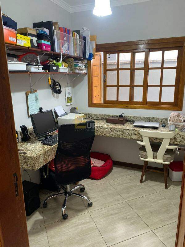 Casa assobradada, com 3 quartos, todos suítes, sendo a master com closet, escritório, salas de estar e de jantar, cozinha, despensa, área de serviço, edícula com quarto multiuso e banheiro, espaço gourmet com churrasqueira, jacuzzi, garagem para 4 carros, sendo 2 cobertos,