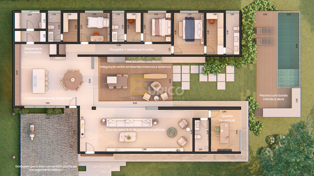 A casa será entregue com paisagismo, aquecimento, marcenaria e eletrodomésticos na área comum mas é possível incluir a casa toda, conforme negociação com o comprador.