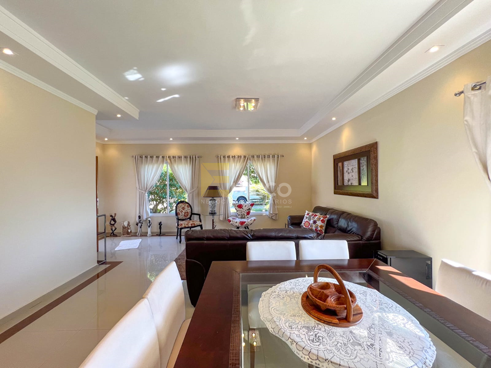 Casa térrea Porteira Fechada, 4 suítes, sendo 1 master com hidro, 6 banheiros no total (1 lavabo e 1 externo), Sala de estar e jantar integradas, Sala de TV, Cozinha, área de serviço, área gourmet espaçosa, Piscina climatizada e com iluminação especial, espaço para home office