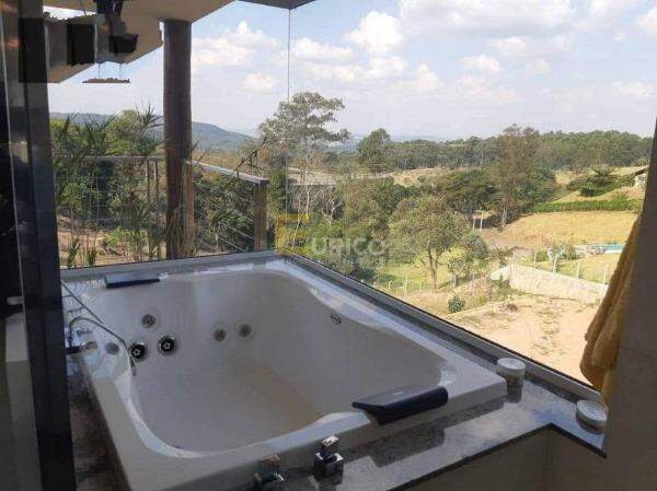 Linda casa com 526m² de muito charme com 3 dormitório sendo 1 suíte máster com closet e hidromassagem e sala intima e uma vista espetacular, 2 suítes americanas, 2 escritórios um deles no mezanino, sala de TV, sala de estar com lareira, cozinha integrada com sala de jantar, lavanderia, lavabo, casa bem iluminada, área de laser com piscina borda infinita, churrasqueira, e muito verde ao redor, o condomínio bem arborizado, tranquilo, ideal para sua família.