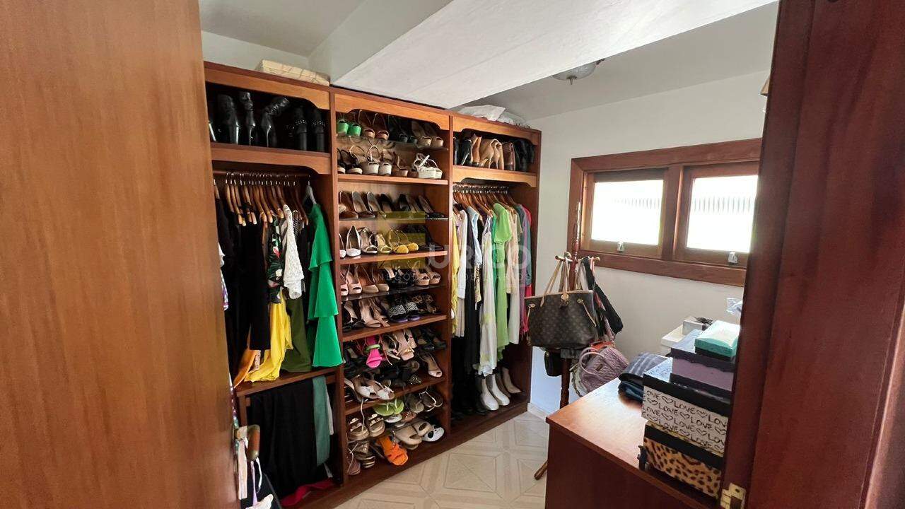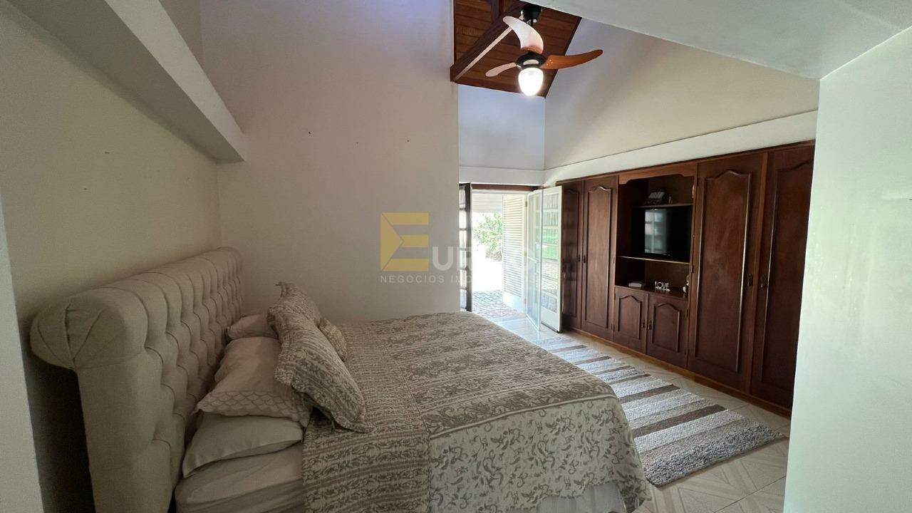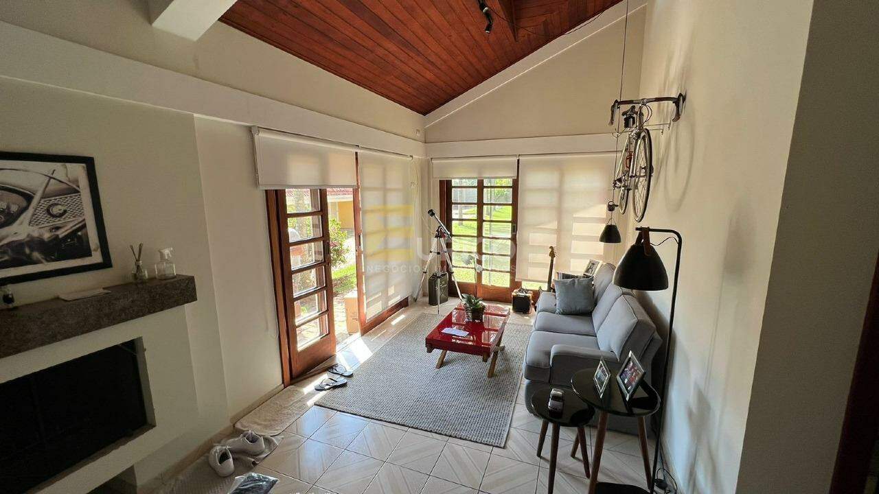 São 4 suítes. É isso mesmo, uma casa confortável, completa, em perfeito estado, com ambientes amplos e muito iluminados, com muita área verde, quadras de tênis e poliesportiva e casa de hospedes possuindo 2 suítes.