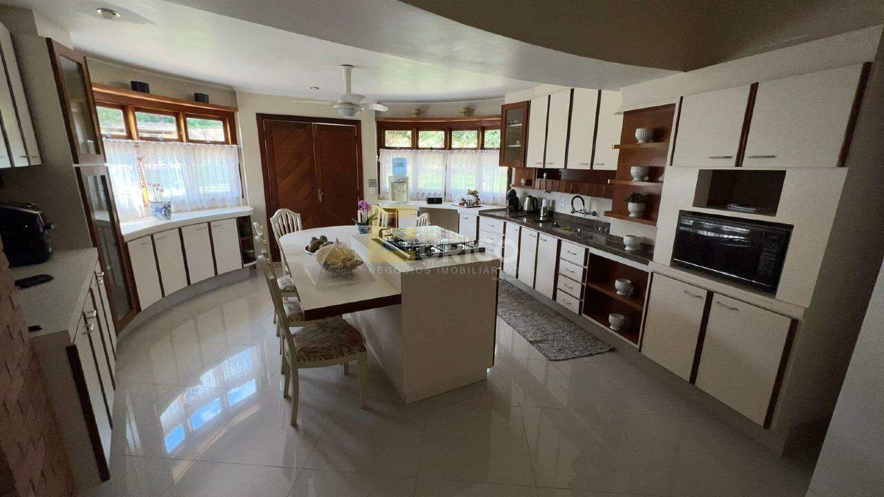 Sendo a salas de estar, de jantar, de TV e amplo living com com lareira, cozinha repleta de armários e copa, área de serviço e dependências de funcionário.