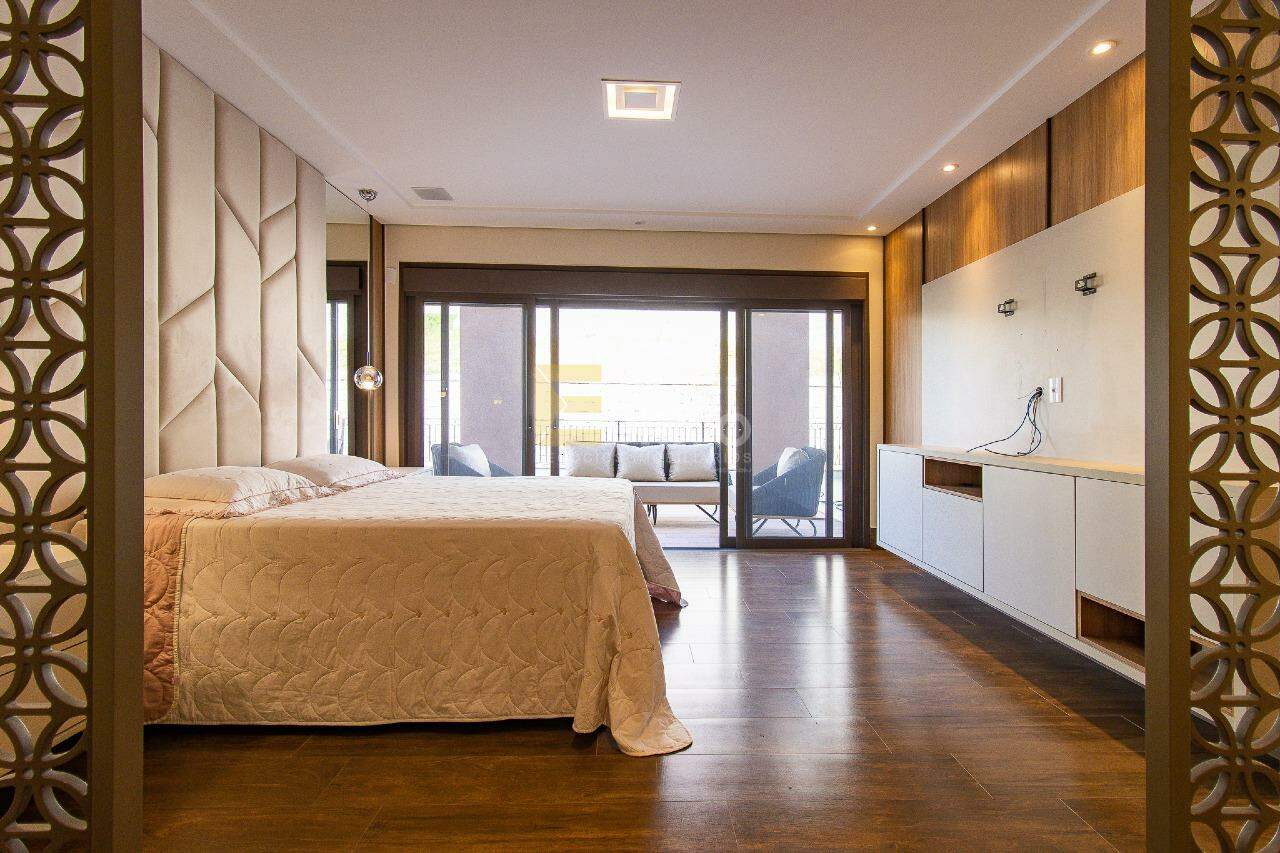 A suíte master do casal é bem caprichada, com closet amplo para alegria feminina. O banheiro do casal é bem espaçoso e oferece duas duchas e duas pias. Esse ambiente possui uma varanda ampla ideal para você que gosta de ler aquele livro ou apreciar um bom vinho.